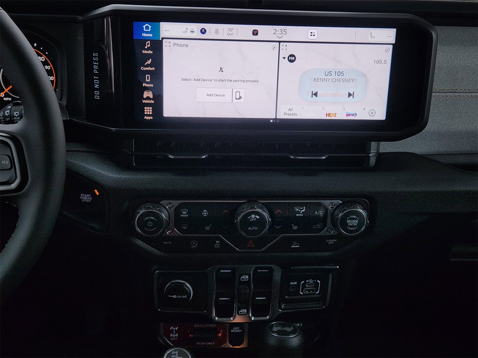 - Radio w/Seek-Scan, Clock, Speed Compensated Volume Control, Aux Audio Input Jack, Steering Wheel Controls, Voice Activation, Radio Data System and Uconnect External Memory Control