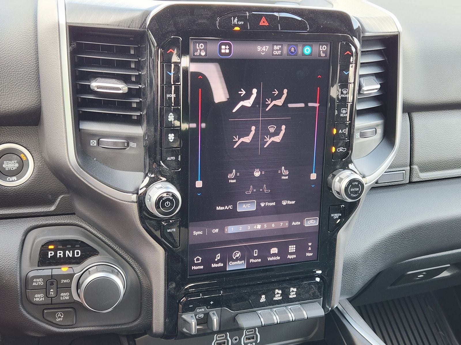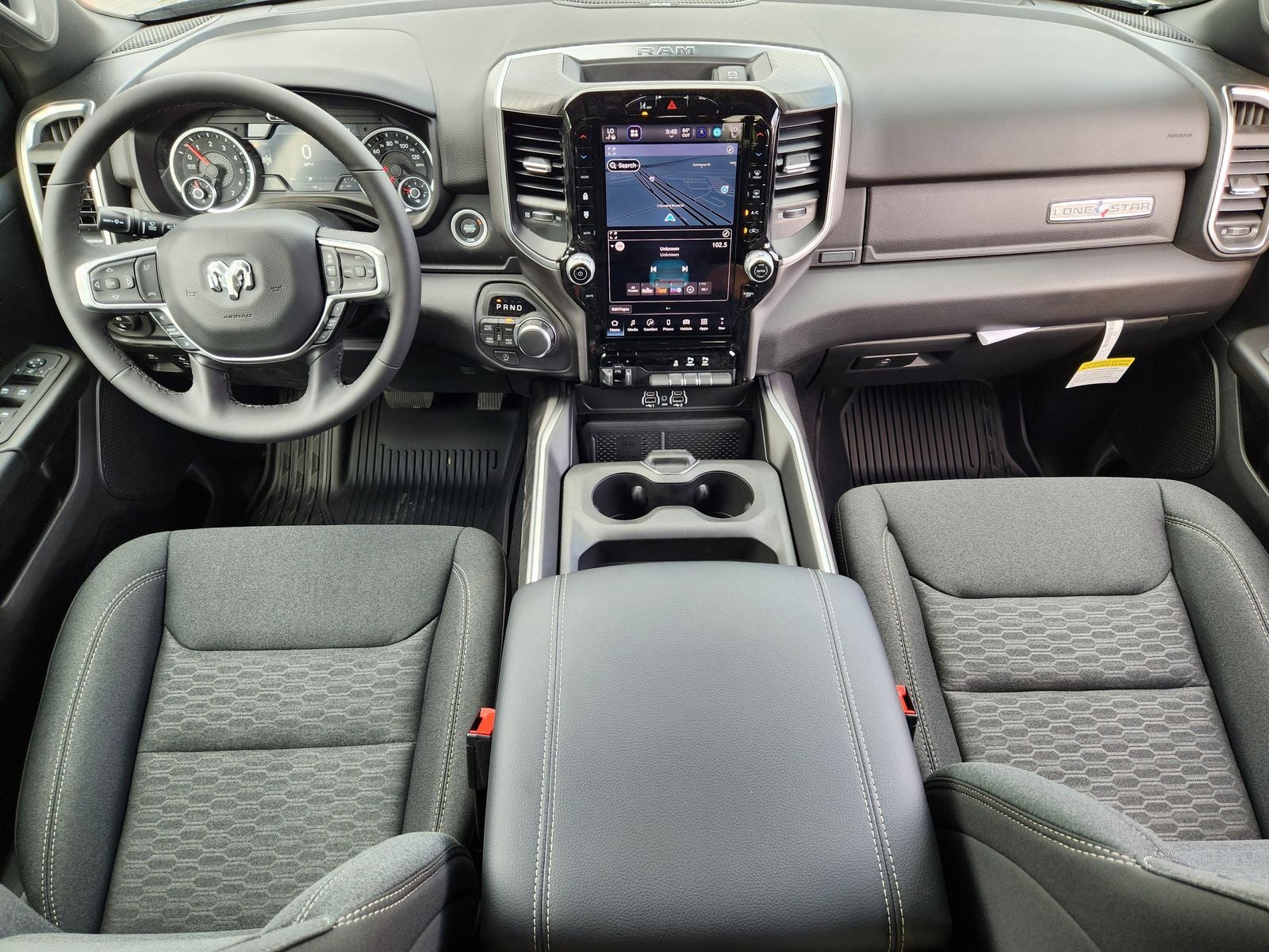 Inside the spacious Crew Cab, Laramie refinement is front and center. Features include heated leathertrimmed bucket seats, a heated steering wheel, dualzone automatic climate control, poweradjustable pedals with memory, and a foldflat load floor with rear underseat storage. A large 12inch digital instrument cluster pairs seamlessly with Uconnect 5 NAV on a massive 12inch touchscreen, delivering an intuitive and hightech driving environment.