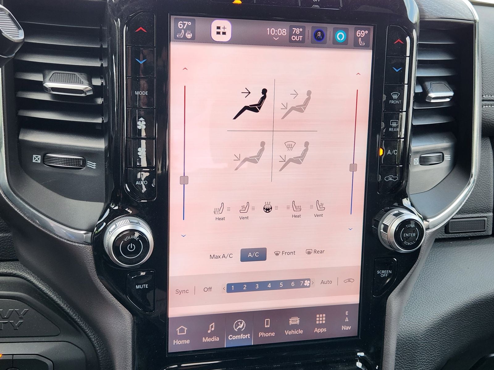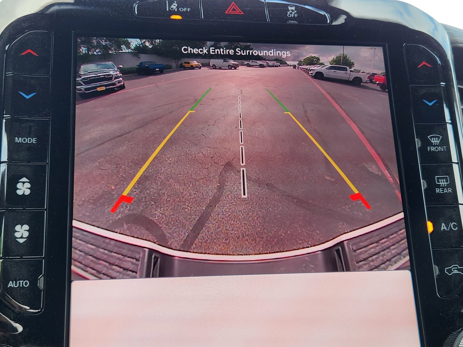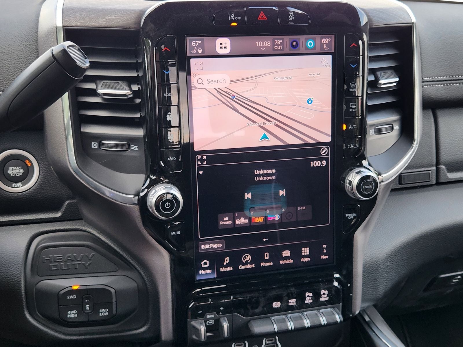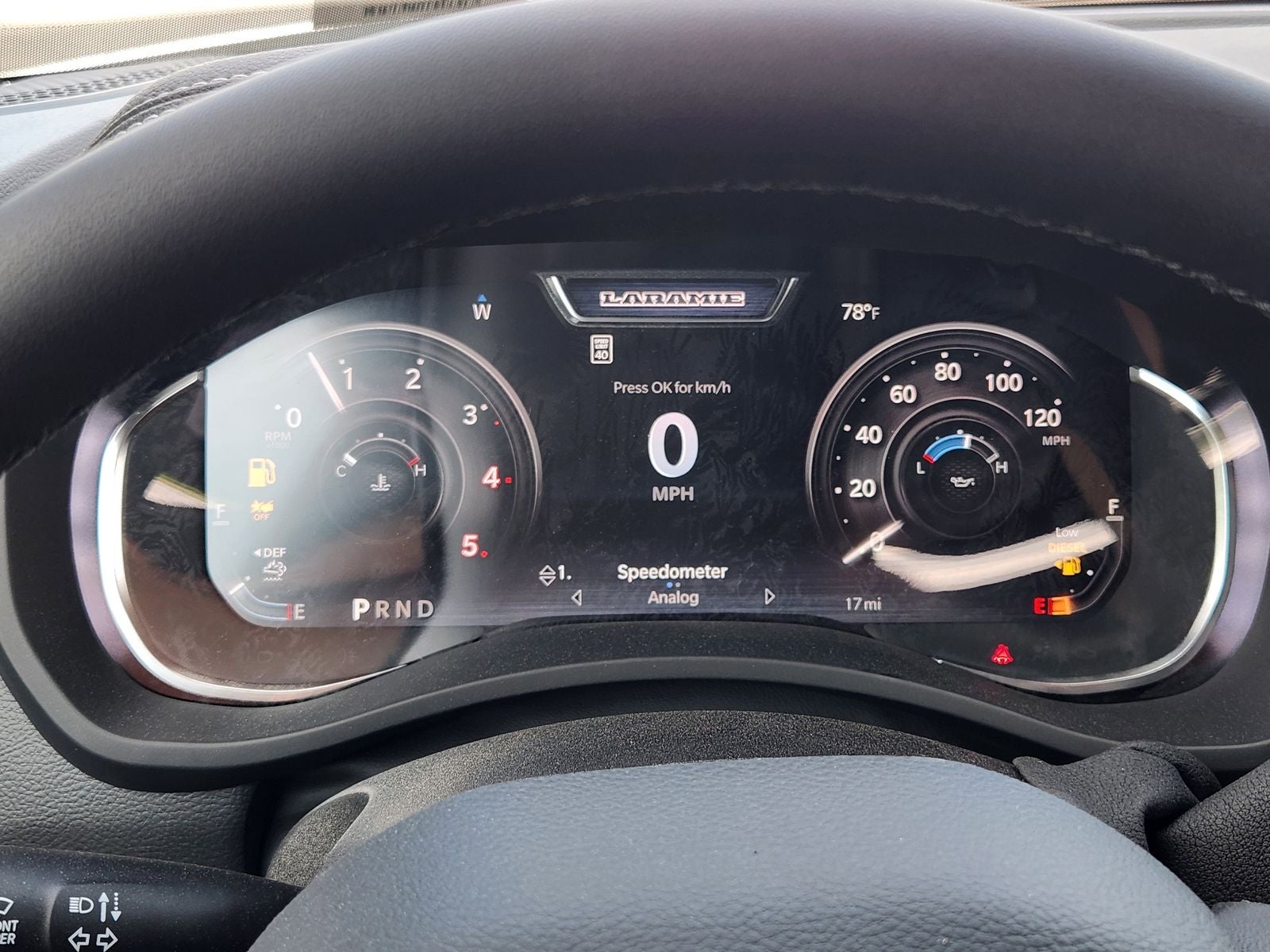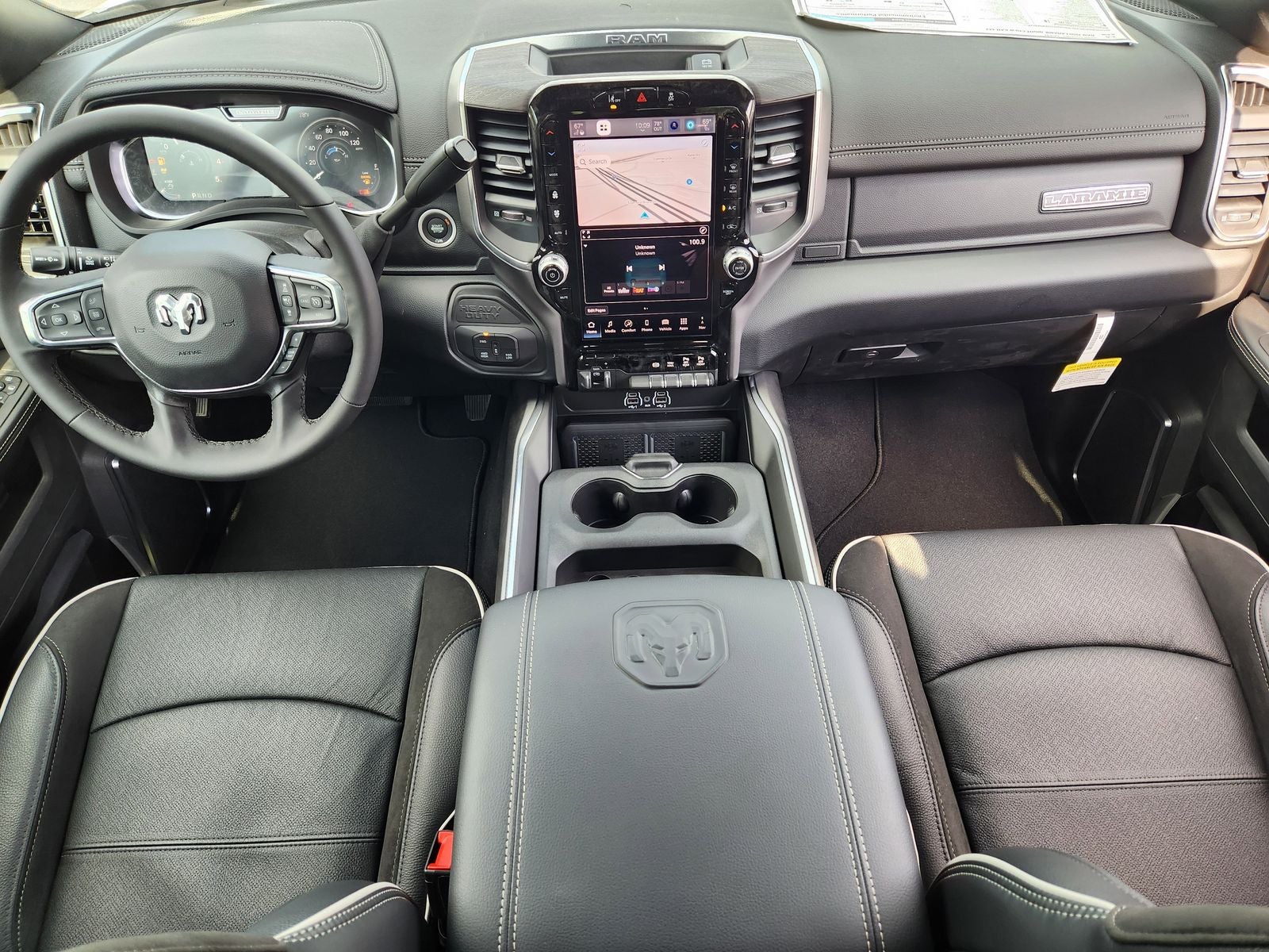 Inside the spacious Crew Cab, Laramie comfort is front and center. Features include heated leathertrimmed bucket seats, a heated steering wheel, poweradjustable pedals with memory, dualzone automatic climate control, and a foldflat load floor with added storage. A large 12inch digital instrument cluster pairs with Uconnect 5 NAV on a 12inch touchscreen, creating a driverfocused, hightech cabin.