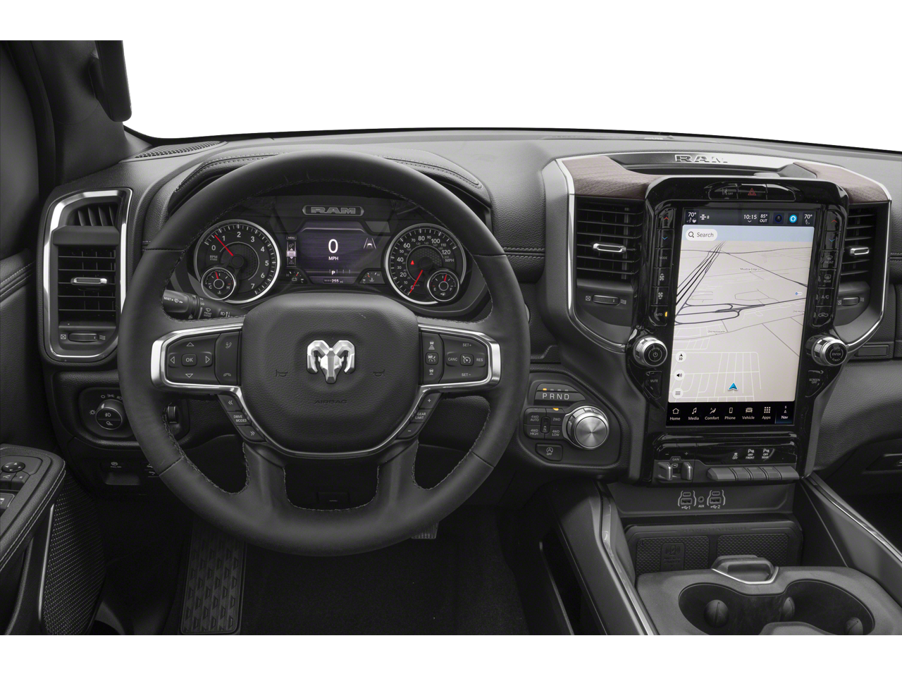 Ivory White Tri-Coat Pearlcoat 2025 Ram 1500 Laramie 4WD 8-Speed Automatic 3.0L I6 10 Speakers, 12-Way/1-Way Trailer Connector, 3 Rear Seat Head Restraints, 4 Way Front Headrests, 4-Corner Air Suspension, 4-Wheel Disc Brakes, 4G LTE Wi-Fi Hot Spot, Active Driving Assist System, Advanced Safety Group II, Air Conditioning, Alloy wheels, Apple CarPlay, Apple CarPlay/Android Auto, Audio memory, Auto High-beam Headlights, Auto-dimming Rear-View mirror, Brake assist, Cluster 12 TFT Color Display, Compass, Connected Travel & Traffic Services, Connectivity - US/Canada, Delay-off headlights, Driver Seat Memory, Drowsy Driver Detection, E-Locker Rear Axle, Evasive Steer Assist, Exterior Mirrors Approach Lamps, Falken Brand Tires, Front Extra HD Shock Absorbers, Front Seat Back Map Pockets, Front wheel independent suspension, Google Android Auto, GPS Antenna Input, GPS Navigation, harman/kardon 19 Speaker Premium Sound, HD Radio, Heads-Up Display, Heated Front Seats, Heated rear seats, Heated Steering Wheel, Integrated Voice Command w/Bluetooth®, Intersection Collision Assist System, Laramie Level 2 Equipment Group, Memory seat, Navigation System, Off Road Decals, Off Road Group, Panic alarm, ParkView Rear Back-Up Camera, Power 2-Way Driver Lumbar Adjust, Power driver seat, Power steering, Power Tailgate, Power windows, Radio: Uconnect 5 Nav w/14.4 Display, Rain Sensitive Windshield Wipers, Raised Ride Height, Rear Extra HD Shock Absorbers, Remote keyless entry, Selec-Speed Control, SiriusXM w/360L, Speed control, Surround View Camera System, Tow Hooks, Traffic Sign Recognition, Trailer Brake Control, USB Host Flip.
